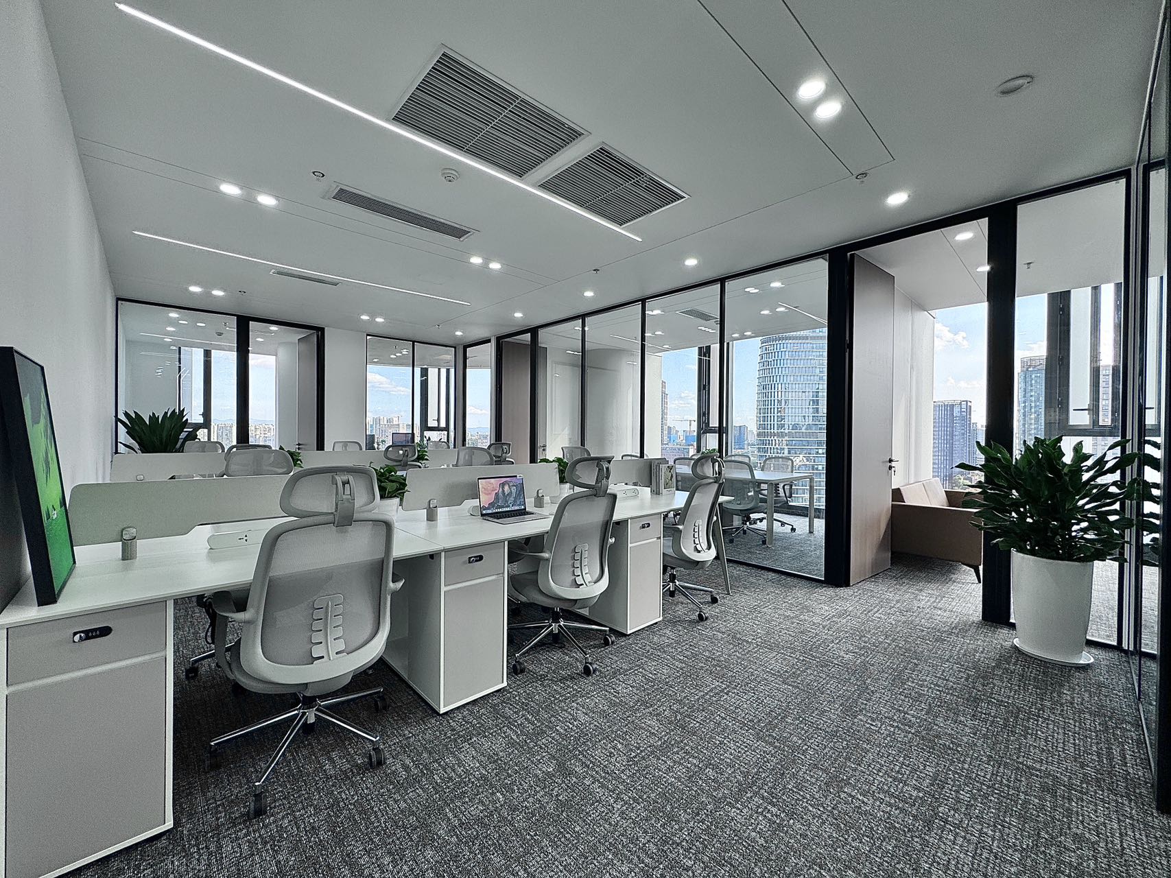 装修:格局:5隔间+12工位,精装修带家具,直接拎包入住!